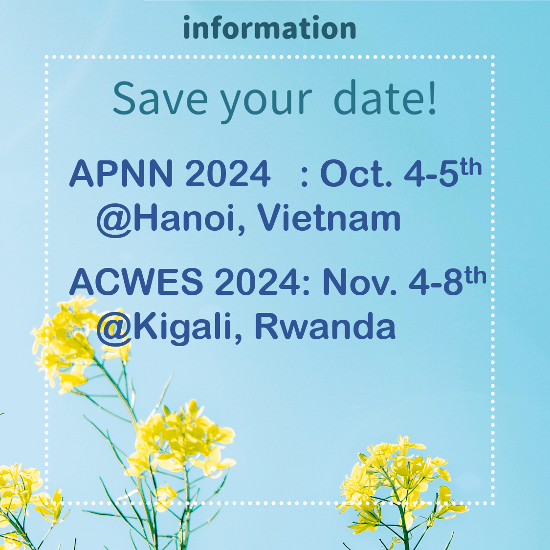 Dear INWES members – We are happy to inform everyone of two regional networking events. We hope you can save the dates.Please check back in future articles …